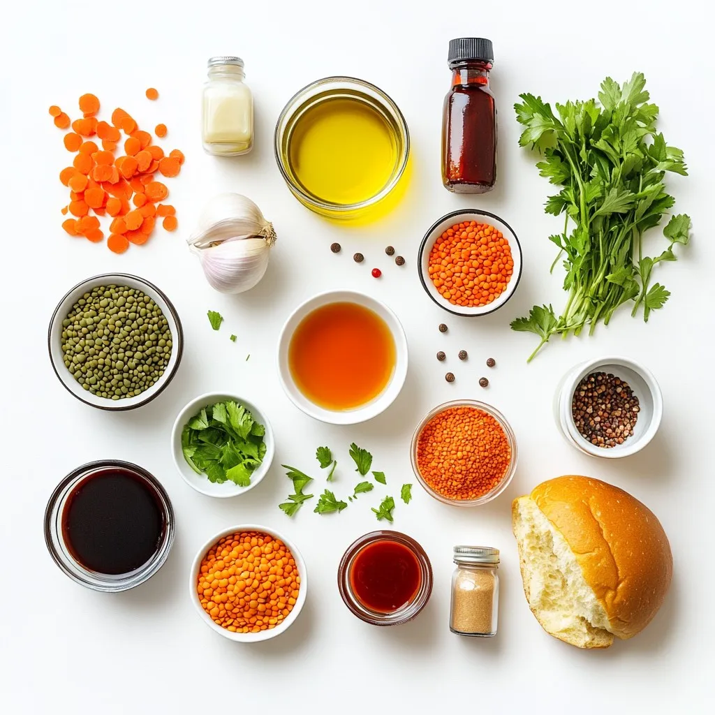Each ingredient adds its own flavor and texture. Lentils are the star here. They give a hearty base. The vegetable broth adds depth. Olive oil helps sauté the veggies. Onions and garlic bring sweetness. The bell pepper adds crunch. Grated carrot adds color and sweetness. Tomato sauce and paste create a rich sauce. Maple syrup adds a hint of sweetness. Apple cider vinegar balances the flavors. Worcestershire sauce gives umami. Smoked paprika and chili powder add warmth. Salt and pepper enhance all the flavors. Finally, the whole grain buns hold everything together, while parsley adds a fresh touch.