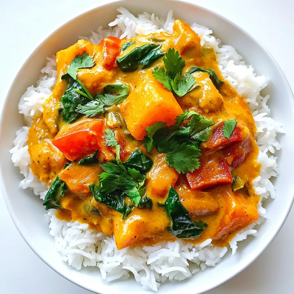 A rich and flavorful vegan curry made with sweet potatoes, coconut milk, and fresh spinach.