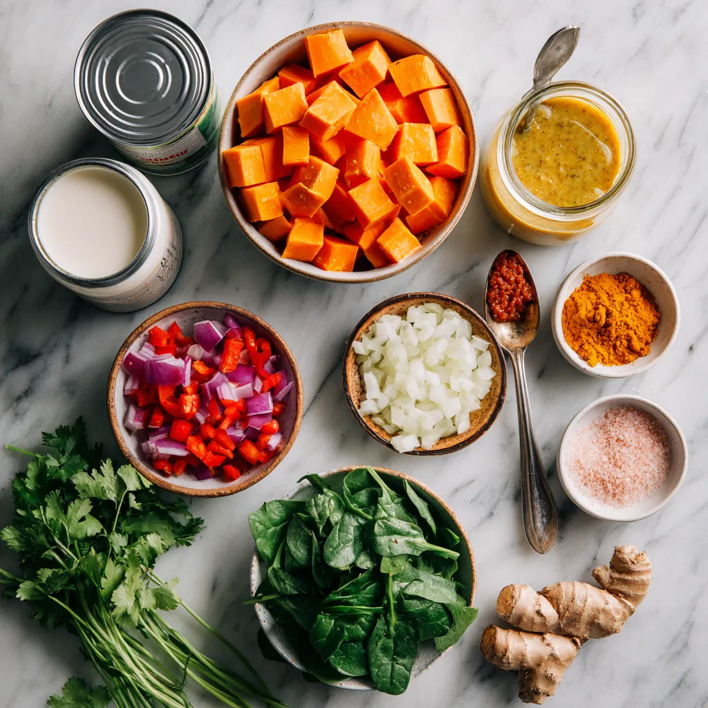 These ingredients create a creamy base and rich taste. Sweet potatoes add natural sweetness and nutrients. The coconut milk gives the dish a smooth texture.